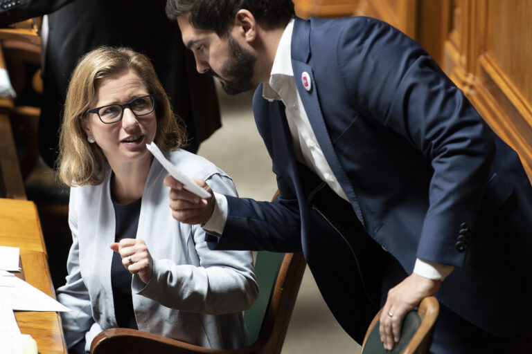 Nationalraetin und Kommissionssprecherin Christa Markwalder, FDP-BE, links, und ihr Ratskollege Cedric We ...