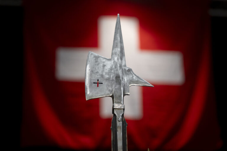 L'UDC voulait également installer deux hallebardes lors de sa présentation. Pour elle, cette arme médiévale symbolise le combat pour la souveraineté suisse.