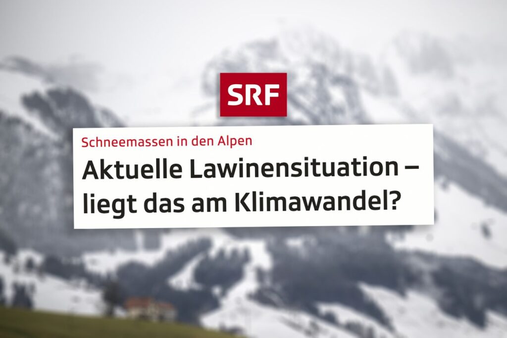 Les chutes de neige et le danger d’avalanches en plein hiver préoccupent aussi la SSR. À la radio et télévision suisses, on se demande: « Est-ce dû au changement climatique? » La rédactrice entend par changement climatique manifestement le réchauffement climatique et part dans sa question de l’hypothèse que l’augmentation des fortes précipitations estivales pourrait se transposer à l’hiver.