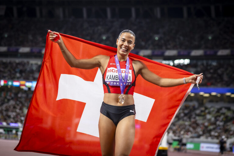 La sprinteuse suisse sur haies Ditaji Kambundji a marqué l'histoire du sport suisse: avec une course sensationnelle sur 100 mètres haies, la Bernoise de 22 ans remporte la médaille d'or aux Championnats du monde à Tokyo - la première Suissesse de l'histoire. En 12,24 secondes, elle laisse non seulement toutes ses principales rivales derrière elle, mais elle bat aussi son propre record national de 16 centièmes remarquables.