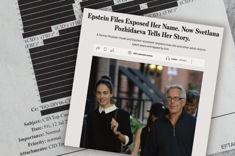 Après la mort d’Epstein, des dizaines de femmes se sont manifestées auprès de programmes d’indemnisation. Pozhidaeva faisait partie des requérantes. « J’ai été harcelée et contrôlée par Jeffrey Epstein pendant plus de dix ans », a-t-elle déclaré. « J’en ai assez d’être harcelée par qui que ce soit. »