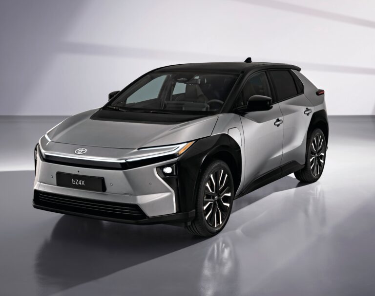 Toyota bZ4X, disponible avec une batterie de 57,7 kWh et traction avant avec 167 CH/123 kW, batterie de 73,1 kWh et traction avant avec 224 CH/165 kW ou batterie de 73,1 kWh et traction intégrale avec 343 CH (252 kW). .
